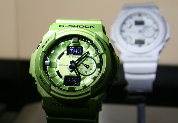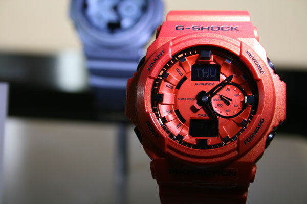 تتبنى Casio G-Shock GA-150A ألوانًا معدنية تجعل لوحة ألوان Pantone تخجل: الأخضر والأزرق والبرتقالي. مقاومة للغاية ومقاومة للماء حتى عمق 200 متر، تحتوي على عدد كبير من الوظائف: 29 منطقة زمنية، إضاءة LED، ساعة توقيت، تقويم، عد تنازلي، إنذارات…