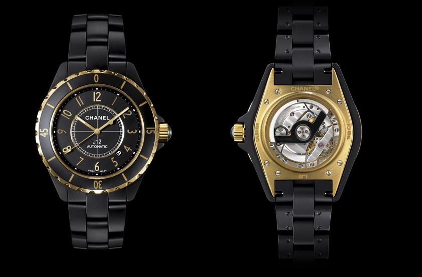 La céramique high-tech noire microbillée alliée au mouvement AP3120 avait donné naissance à un garde-temps à la finition exceptionnelle. Chanel a personnalisé le mouvement par un nouveau design du pont de balancier associé à un rotor en or habillé de céramique high-tech noire. L’or jaune 18 carats vient compléter ce tableau déjà exquis.