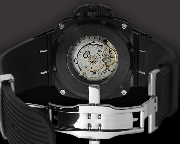 To brave the elements, the watch is equipped with a crown guard (the Lock-Ed concept) and finished with an extra-hard PVD coating. PVD stands for Physical Vapour Deposition, a surface-treatment process that is highly resistant to wear.