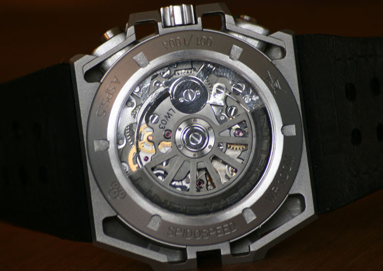 The SpidoSpeed is available in three versions: microblasted steel, DLC, and rose gold with DLC titanium. A closer look at the microblasted steel version.