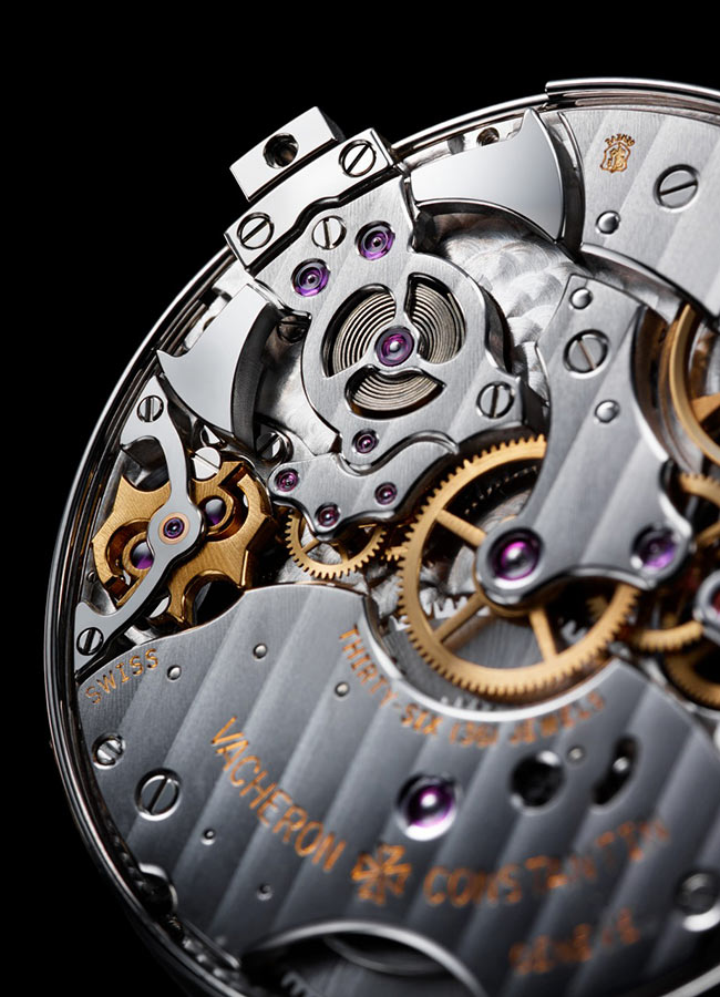 Le calibre 1731 (année de naissance de Jean-Marc Vacheron) est doté d’une réserve de marche de 65 heures et d’un régulateur de sonnerie volant qui lui permet d’être totalement silencieux au contraire des régulateurs à ancre habituels. Oui, le son est aussi une affaire de silence.